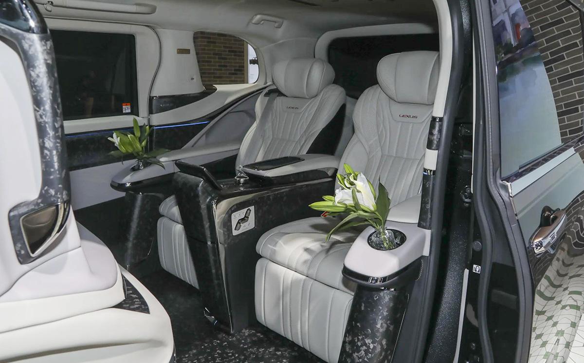 从实车尾部的LM500h标识来看,这辆特别版的雷克萨斯LM搭载的是2.4T油电混动系统,综合功率为270千瓦,传动系统匹配的是6AT变速箱。